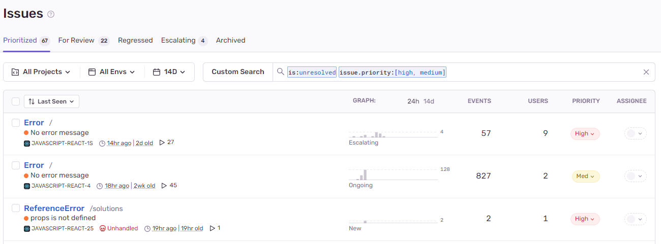 이때, 고민해 보면 좋을 부분은 '어떤 에러를 수집할지' 여부다. Sentry는 할당량이 정해져 있어 수집된 에러가 일정량을 초과하면 (유료 버전의 경우) 요금이 과금될 수 있다. 따라서 모든 에러를 무조건적으로 수집하는 것이 아니라, 유의미하고 중요한 에러를 선별하여 수집할 필요가 있다. 특히 사용자 경험에 직접적인 영향을 미치거나, 서비스의 정상적인 동작을 방해할 수 있는 에러에 우선순위를 두어야 한다.