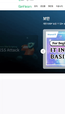 먼저 인프런에 접속했을 때, 최상단에서 위로 가기 버튼이 없지만 스크롤을 아래로 내리면 애니메이션 없이 버튼이 등장합니다.