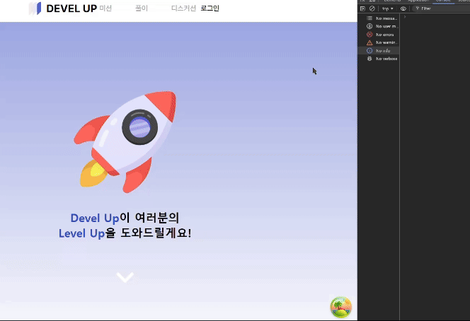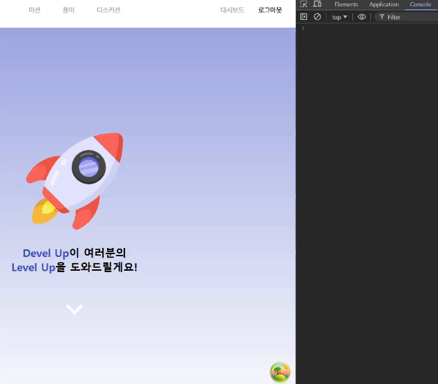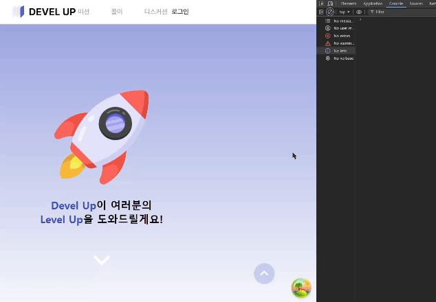 Devel Up 서비스에는 '위로 가기 버튼'이 있습니다. 아래 사진과 같은 버튼인데요, 글이 길어지는 경우 사용자 경험을 향상시키기 위해 스크롤을 최상단으로 끌어올릴 수 있게 해주는 버튼입니다.